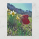 Fada com asas vermelhas e vestido roxo Cheirando no amarelo Daffodils Flores Fadas e Foto pelo artista Sandy Closs Fairy, fadas, píxias, píxias, fantasia, flores, borboletas, vermelho, amarelo, roxo, conto de fadas primavera, feira