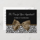 Faça uma declaração de moda com esta tenda marca negra e branca do salão de impressão leopardo, lembrete do cartão postal com uma fita marrom-carafe girada amarrada em um arco chic. Personalize este lembrete de compromisso de na moda adicionando seu nome de negócios e informações de contato às áreas de modelo personalizáveis. Esta é parte da Coleção de Moedas de Impressão Animal. Imagem impressa plana, não fita real.