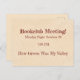 O cartão postal para o anúncio do clube de apostas tem espaço para data, hora e nome do livro. Tipografia vermelha assombrada casual num cheio de fundo vellum envelhecido de um mar de palavras inglesas.