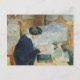 Vintage pintura de mulher em azul se concentrando em um livro com seu quarto como pano de fundo. Impressionista inspirou arte.