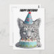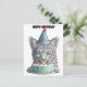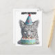Cartão Postal Leopardo-das-neves com chapéu de aniversário