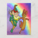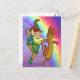Cartão Postal Leprechaun e Mouse dançando com o Rainbow