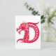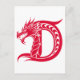 Cartão Postal Letra D Estilizada com Dragão, Alfabeto de Dragão,