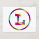 Um monograma colorido com a letra L em cores do arco-íris dentro de um círculo do arco-íris. Compartilhe de seu orgulho de seu nome com uma inicial feliz L. do divertimento.