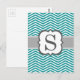 Cartão Postal Letra Teal White Monograma S Chevron