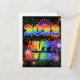 Este design do cartão-postal apresenta as mensagens "2022" e "FELIZ ANO NOVO!" na frente, com letras coloridas gradiente do espectro arco-íris, juntamente com um padrão inspirado em fogos de artifício que explodiram. A parte traseira apresenta uma mensagem personalizável. Cartões postais como este talvez pudessem ser usados para enviar saudações de Dia do ano novo a amigos, familiares ou clientes.