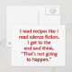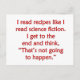 Celebre sua falta de habilidades de cozinhar! Lê "Eu leio receitas como eu leio ficção científica. Chego ao fim e penso, "Isso não vai acontecer." Disponível em impressão verde, vermelho ou branco.