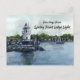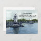 Um cartão-postal de lembrança com uma vista inspirada pela luz do Primavera Point Ledge Light, em South Portland, Maine, com um veleiro na água, numa mão cotidiana pintada com aquarela. No dentro é uma forma coordenadora de texto verde e branco que você pode editar para ajustado de suas necessidades.