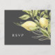 Cartaz de entrega RSVP de casamento chic e barato coordenado para a coleção de casamento de Lemon e Leaves d'água. Este cartão postal RSVP economiza envelopes e o custo de postagem para um alternativo moderno e ecológico para o tradicional cartão RSVP de casamento. Adicione a data de resposta, as opções de refeição e o endereço de retorno na parte traseira usando o modelo. Outras cores disponíveis na loja
