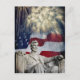 Foto da estátua de Abraham Lincoln no Memorial Lincoln em Washington DC com lindos fogos de artifício explosivos e a bandeira dos EUA no fundo. Imagem composta de excelente para celebrações de feriados patrióticos americanos.