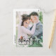 Elegante, na moda e cartão com fotos vertical balbucioso para obrigado seus hóspedes por fazer parte do dia do seu casamento. Este obrigado personalizável que você faz o cartão-postal apresenta uma camada negra de caligrafia moderna. Este design também está disponível em outras placas e cores.