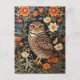 Envie um toque de beleza eterno com este cartão postal com uma coruja intermitente contra um pano de fundo floral inspirado por William Morris. Perfeito para amantes da natureza e entusiastas da arte safra, este cartão postal elegante faz uma manutenção memorável ou uma nota pensativa para qualquer ocasião.