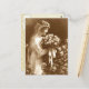 Retrato lateral de uma bela noiva com um buquê exuberante de rosas. Foto 1918, cortesia das imagens LOC HTM