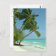 Fotografia de palmas, areia, oceano, céu de uma praia das Maldivas.
