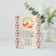 Um cartão postal de agradecimento com um desenho de uma raposa fofa dormindo pacificamente. Uma coroa de folhas verdes atrás. O fundo é um padrão com bolinhas pálidas e macarons coloridos sobrepostos. Mensagem personalizada no verso.
