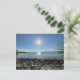Este cartão postal cênico impressionante apresenta uma vibrante vista oceânica, luz solar radiante e um brilhante céu azul. As calmantes águas azuis esticam-se no horizonte, enquanto rosas rochas costeiras no primeiro plano adicionam um toque de beleza natural.