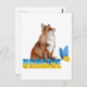 Uma bela maneira de os amantes de os animais mostrarem o seu apoio à Ucrânia. O cartão postal apresenta a cor vermelha-d'água com o texto "Ucrânia" e a borboleta nas cores azul e amarela da sua bandeira nacional.