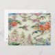 Cartão Postal Lindas flores de beija-flores de vidro manchado