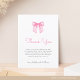 Expresse sua gratidão com nosso cartão-postal de agradecimento de chá de bebê com laço rosa elegante, projetado para celebrar a chegada do seu pequeno com elegância e charme moderno. Este cartão lindamente elaborado apresenta um delicado laço em aquarela combinado com uma fonte sofisticada, incorporando uma estética simples, elegante e clássica. Toques femininos e elementos charmosos o tornam uma escolha perfeita para um chá de bebê elegante.