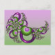 Cartão Postal Lindo Coração Verde Rosa Moderno Abstrato Fractal
