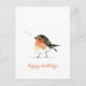 NewParkLane - Cartão de aniversário simples, apresentando um pequeno e fofo pássaro europeu robin redbreast em tons de marrom, laranja e branco, e um desejo de 'Feliz Aniversário' em tipografia elegante e sofisticada em laranja queimado.