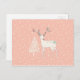 Lindos, modernos e caprichosos renascres brancos decorados com elementos florais e pássaros em seus chifres. Também uma linda árvore de Natal branca florida. O fundo é um rosa feminino com um padrão de flocos de neve retrô fofo.