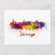 Cartão Postal Linha do horizonte de Chicago com aquarela