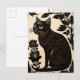 Cartão Postal Linoco de Gato Negro Entre Flores