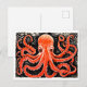 Cartão Postal Linoco de um polvo vermelho em preto-e-branco