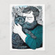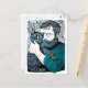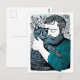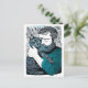 Cartão Postal Linocut Bearded Man segurando um gato