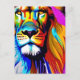 AI gerou trabalho de arte de leão amarelo, laranja, roxo, azul e amarelo, com conteúdo genearítico