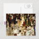 Cartaz com a imagem de garrafas de licor, como se apresenta num bar.