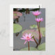 Três lírios de água graciosos encontrados em um lago secreto. Personalize este cartão postal para uma ocasião especial, como chá de panela, festa de aniversário, festa de aniversário ou anúncio. Corresponder a outros produtos da Galeria de Luz em Movimento.