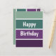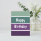 Um padrão listrado horizontal verde e roxo e o texto: Feliz Aniversário. Você pode clicar em personalizar e editar o texto. Escreva duas palavras em uma linha.