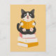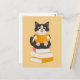 Cartão Postal Livro Kawaii Lover Simples Cartoon Cat Reader Book