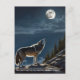 Wolf Symbolism Postcard: Os lobos não têm preferência por uma lua de cheio sobre qualquer outra e uivam mais à noite simplesmente porque são noturnos. Lobos dormem na maioria do dia e ficam acordados a maior parte da noite. O simbolismo do lobo inclui a natureza selvagem, a brincadeira, a astúcia, a coragem, a sabedoria, a força, a proteção, a lealdade, a resistência e a intuição.