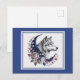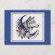 Cartão Postal Lobo & Lua - Encantador Lobo Místico, Lua Crescente, Flores