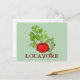Suportem os agricultores locais e frutas e vegetais frescos comprares que não precisam ser enviados e desperdiçam recursos de preciosos. Plantas aromáticas frescas e um tomate maduro com a palavra "Locavore" promove esta abordagem sensata à comida.