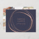 Perfeito para fotógrafos, maquiadores e profissionais de beleza, esses cartões postais chic apresentam um logotipo falso rosa gold abstrato num fundo azul-da-meia-noite, com o nome de sua empresa no centro. Adicione seus detalhes de contato ao verso, juntamente com seis fotos quadradas, para mostrar seu melhor trabalho.