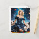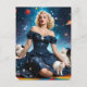 Uma vintage loira num vestido com estrelas por todo o lado e três gatos brancos flutuando nas estrelas fantasia IA gerou arte