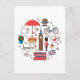 Esta design apresenta símbolos de Londres colocados em forma de círculo sobre um fundo branco.