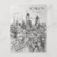 Este cartão-viagem, em estilo desenhado à mão, mostra uma vista das paisagens de cidades de Londres com os edifícios como Gherkin, Shard e Big Ben.