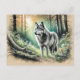 Cartão Postal Lone Wolf in Forest with Sunshine
