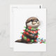 Cartão Postal Lontra de Natal Adorável Envolta em Luzes