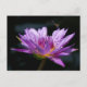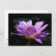 Uma fotografia de uma libélula empoleirada sobre uma adorável lilia roxa de lótus adorna este bonito cartão-postal!