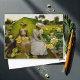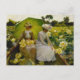 Cartão-postal inspirado pelo trabalho de arte Charles Curran Lotus Lily, mostrando duas mulheres em um barco com um guarda-chuva, cercadas por lírios de lótus vibrantes.