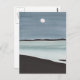 Esta paisagem pintada manualmente foi criada usando aquarela e tinta. Os azuis escuros do céu e do oceano transmitem uma noite de praia escura, balbusta. O negro escuro das paisagens destaca a lua brilhante no céu. A água do oceano é brilhante e parece estar brilhando da luz da lua.