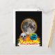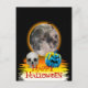 Cartão Postal Lua cheia, crânio e abóbora azul à noite.