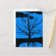 Cartão Postal Lua com árvore, azul cobalto, preto e branco