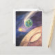 Uma pintura aquosa de uma vista da Terra, mostrada do outro lado da Lua, com um cometa mostrado no fundo. Um estilo colorido, imaginativo e pareado, com turcos e herbáceas verdes Terra, a lua nas cinzas quentes de França, e um espaço sideral azul-violeta e negro. Eu queria começar uma série de pinturas de visões astronômicas únicas. As primeiras são coisas que todos conhecemos, mas apresentadas numa nova perspectiva. Eu fiz esta pintura em aquarela e guache.